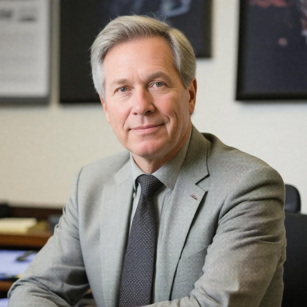 "Generate a realistic photograph of James Fallows, a middle-aged American journalist, author, and editor, sitting in a professional setting, possibly in his office in Washington, D.C., with a warm and introspective expression, wearing attire suitable for a high-profile media personality, with subtle hints of his notable works and achievements in the background."