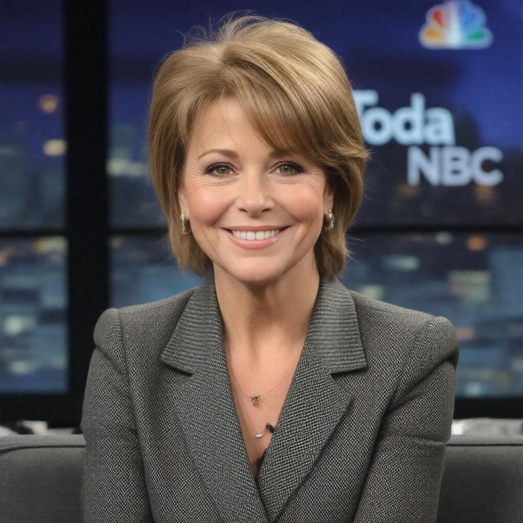 "Generate a realistic image of Jane Pauley, a renowned American television presenter, sitting comfortably in a professional setting, possibly with a warm smile, reflecting her years of experience in journalism, with a hint of her notable works such as 'Today' or 'Dateline NBC' in the background, in a style that captures her professional yet approachable demeanor."