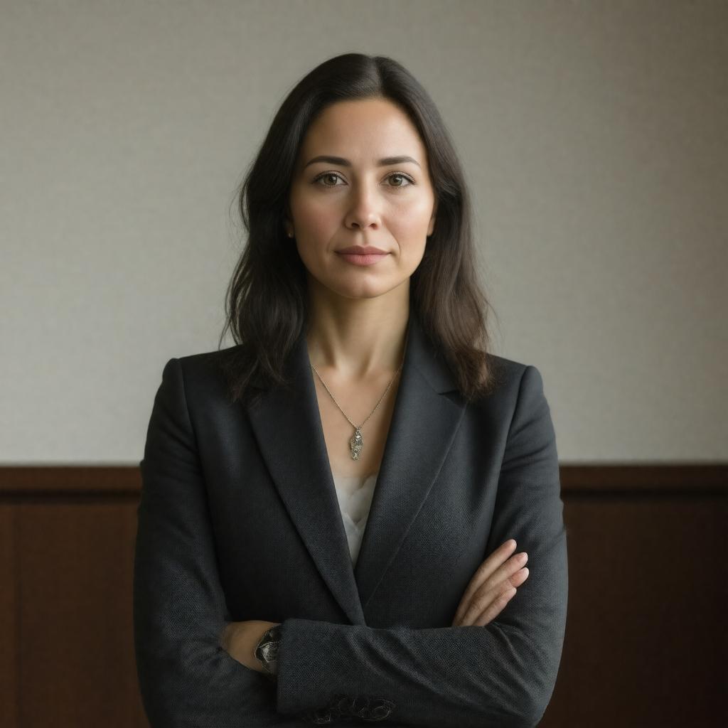 Create a realistic portrait of Jennifer L. Mnookin, an American lawyer and academic administrator, in a formal setting that reflects her profession, such as a university office or a courtroom, incorporating subtle elements that nod to her expertise in forensic science and law, wearing attire suitable for a high-level academic and administrative position, capturing her in a thoughtful or authoritative pose.