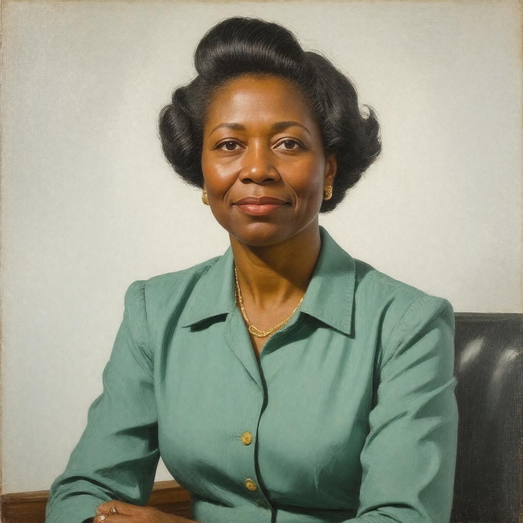 Create a realistic portrait of Jo Ann Robinson, an American activist and educator, in a style that reflects her professional and determined personality, sitting in a setting that suggests her involvement in the Civil Rights Movement, possibly with a background that hints at her role in the Montgomery Bus Boycott and her association with the Women's Political Council, wearing attire typical of the mid-20th century.