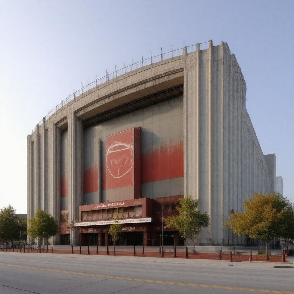 "Generate an image of the exterior of Joe Louis Arena, an indoor arena located in Detroit, Michigan, USA, showcasing its distinctive architecture and surroundings, in a realistic style."