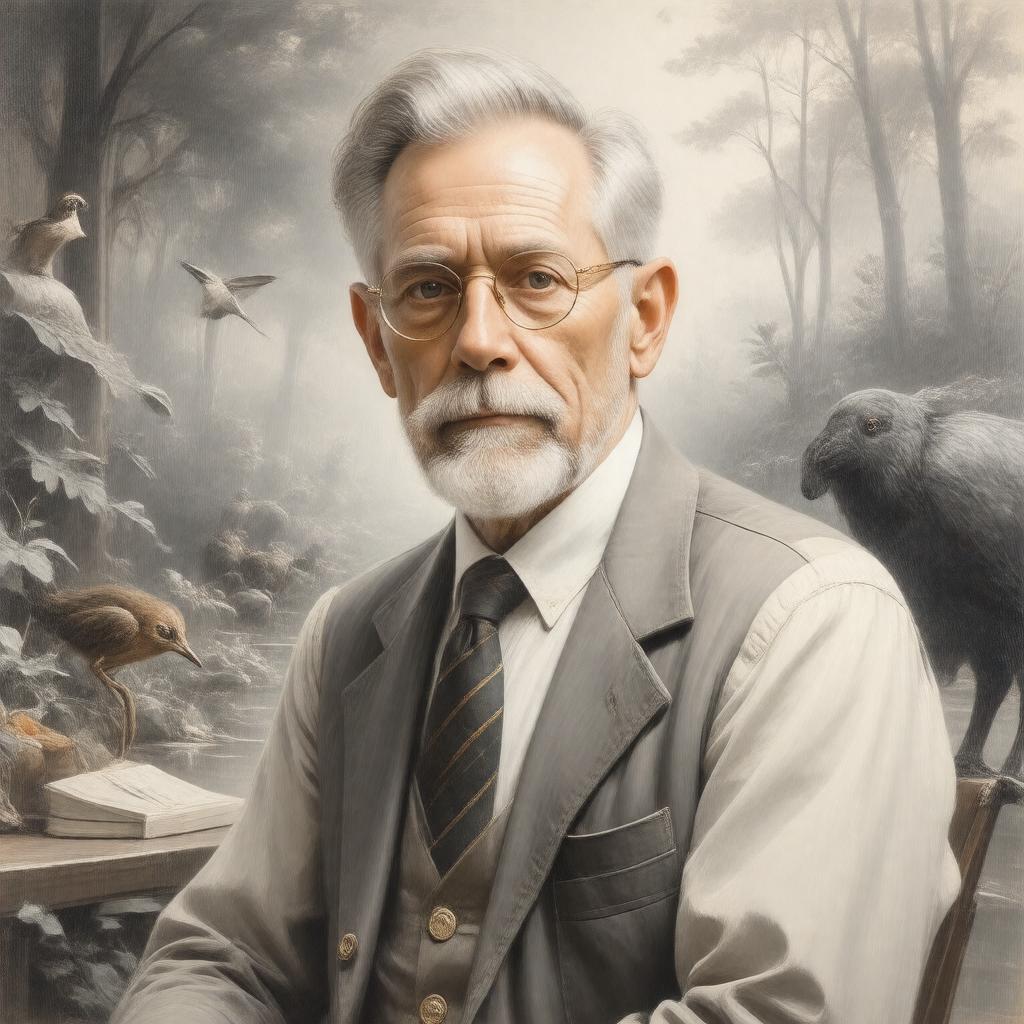 Generate a realistic image of John Alcock, a middle-aged American biologist, in a setting that reflects his work in behavioral ecology, such as a natural outdoor environment or an academic setting like a university office. He should be depicted in a style that suggests a sense of authority and expertise, possibly with a few subtle hints at his notable works or awards. The image should be in a formal, realistic style.
