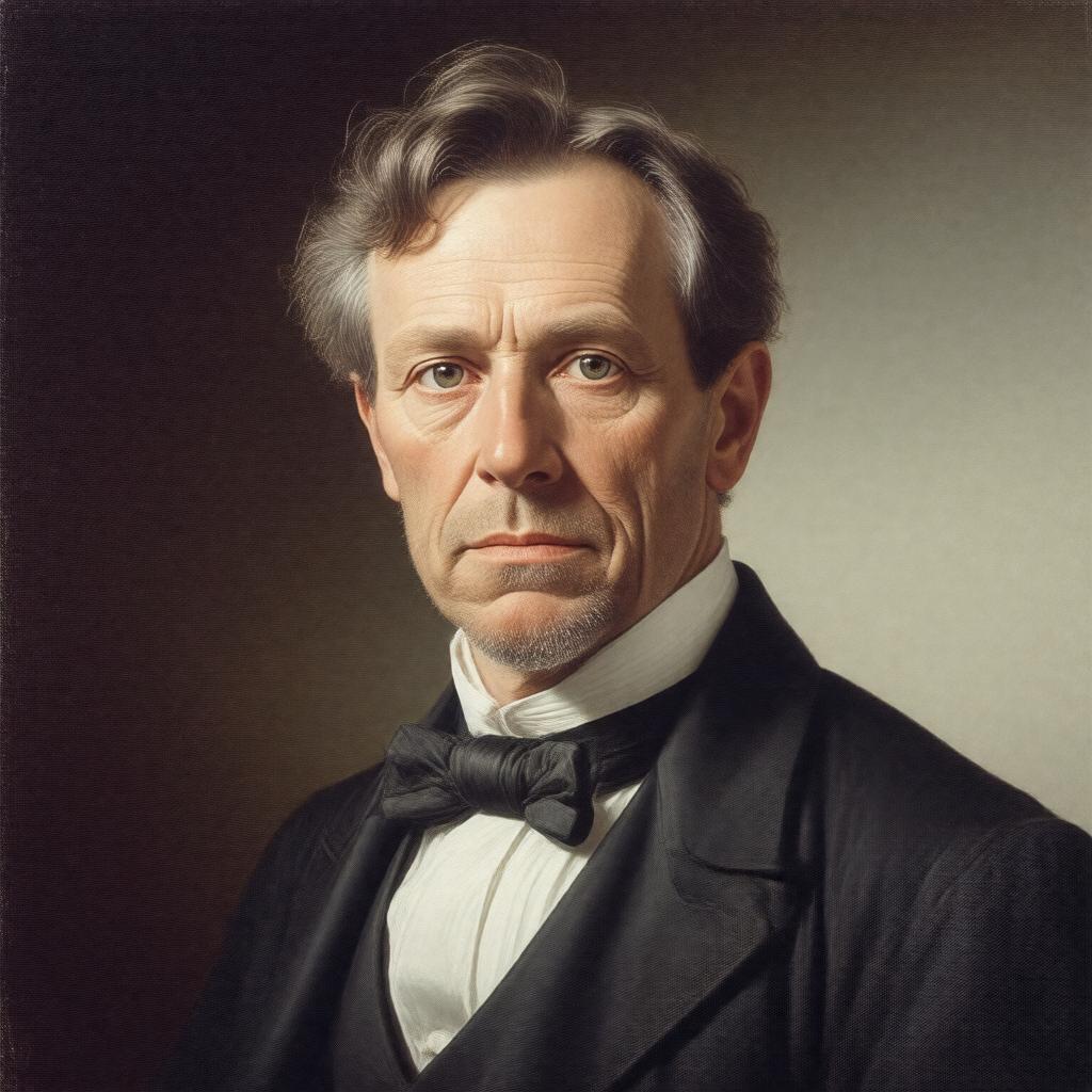 Generate a realistic portrait of John Fry, a middle-aged man with a gentle expression, wearing formal attire typical of the 19th century, set against a subtle background that suggests a study or library, reflecting his intellectual or literary persona.