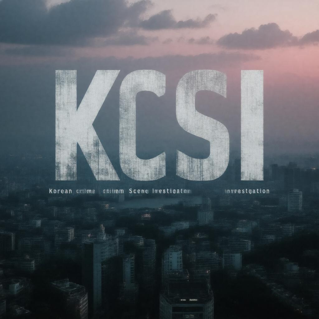 "Generate an image of the logo or a scene from the South Korean television series 'KCSI: Korean Crime Scene Investigation', incorporating elements that reflect its crime and investigation genres, in a realistic style, with a dark and gritty tone, and display it against a backdrop that subtly suggests South Korea, such as a Seoul cityscape at dusk or a KBS2 television studio."