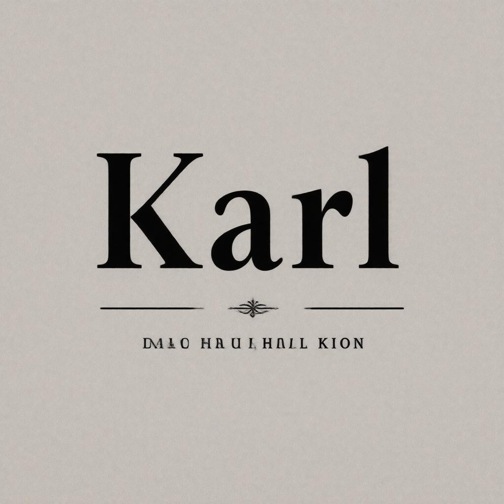 Generate an image of a strong, classic, and elegant masculine nameplate or monogram, featuring the name "Karl" in a bold, serif font, reminiscent of traditional German or Scandinavian typography, with a subtle nod to the notable bearers of the name, set against a neutral background that evokes a sense of timelessness and sophistication.