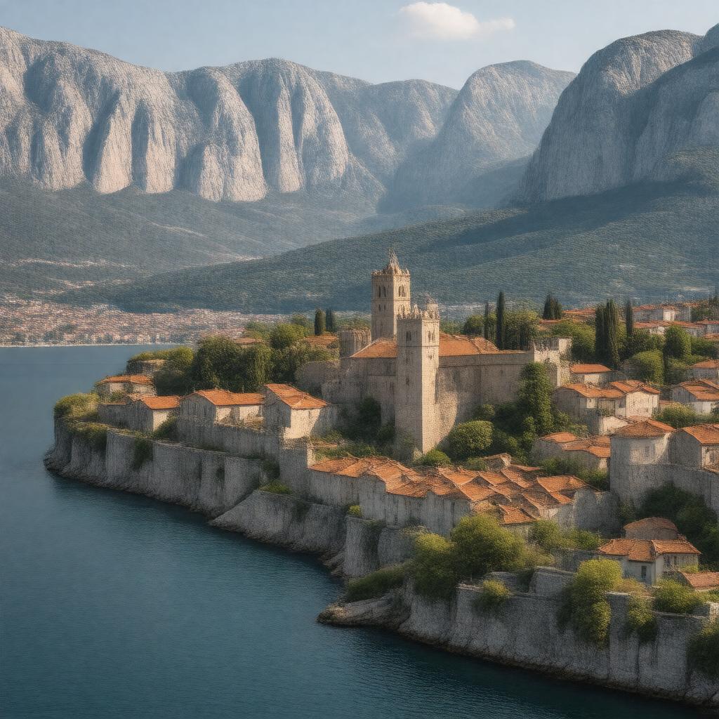 "Generate a realistic image of Kotor, a town located in the Bay of Kotor, Montenegro, showcasing its medieval old town, castle, and cathedral of Saint Tryphon, with a Mediterranean climate and a stunning natural backdrop, in a daytime setting with a mix of historical and modern architectural styles."