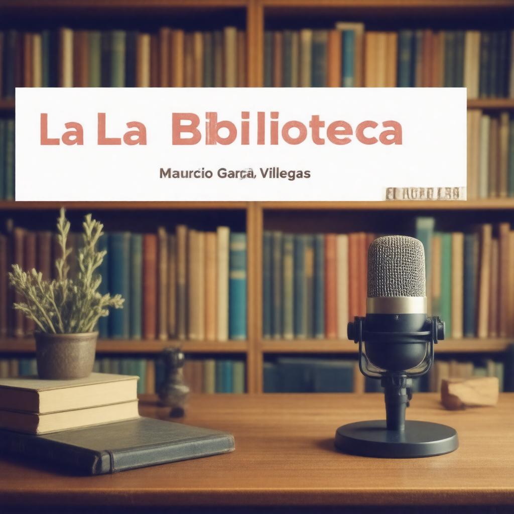"Generate an image of a cozy and inviting library setting with a microphone and a bookshelf in the background, representing La Biblioteca Podcast. The style should be warm and literary, with a hint of Colombian culture. Include a subtle mention of El Espectador as the producer and Mauricio García Villegas as the host, possibly through a book cover or a newspaper clipping. The color palette should be earthy and muted, with a warm lighting that evokes a sense of comfort and learning. The overall mood should be intimate and conversational, reflecting the podcast's focus on literature and books."