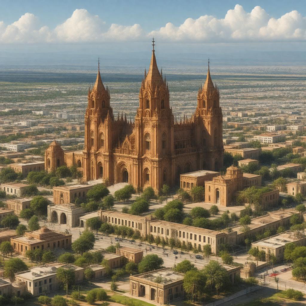 "Generate a realistic image of Laredo, a city located in southern Texas, United States, with a hot semi-arid climate and a predominantly Hispanic or Latino population, featuring iconic landmarks such as the San Agustin Cathedral or the Republic of the Rio Grande Museum, with a style that reflects its rich history and cultural heritage."