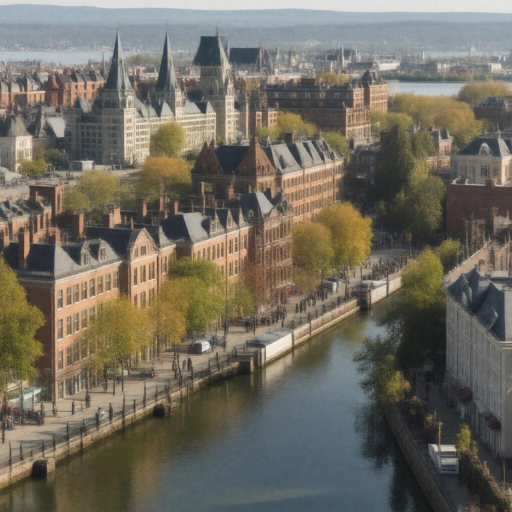 "Generate a realistic image of a charming, historic neighborhood in a Canadian city, featuring a mix of old buildings, cobblestone streets, and scenic views of a river and canal. The neighborhood, known as Lower Town, is situated in Ottawa, Ontario, and is characterized by its diverse population, historic architecture, and notable landmarks such as the Notre-Dame Cathedral Basilica, National Gallery of Canada, and Embassy of the United States. Include King Edward Avenue and Sussex Drive in the scene, with the Rideau River, Ottawa River, and Rideau Canal visible in the background. Depict the area in a warm, sunny light, highlighting its vibrant atmosphere and rich history."