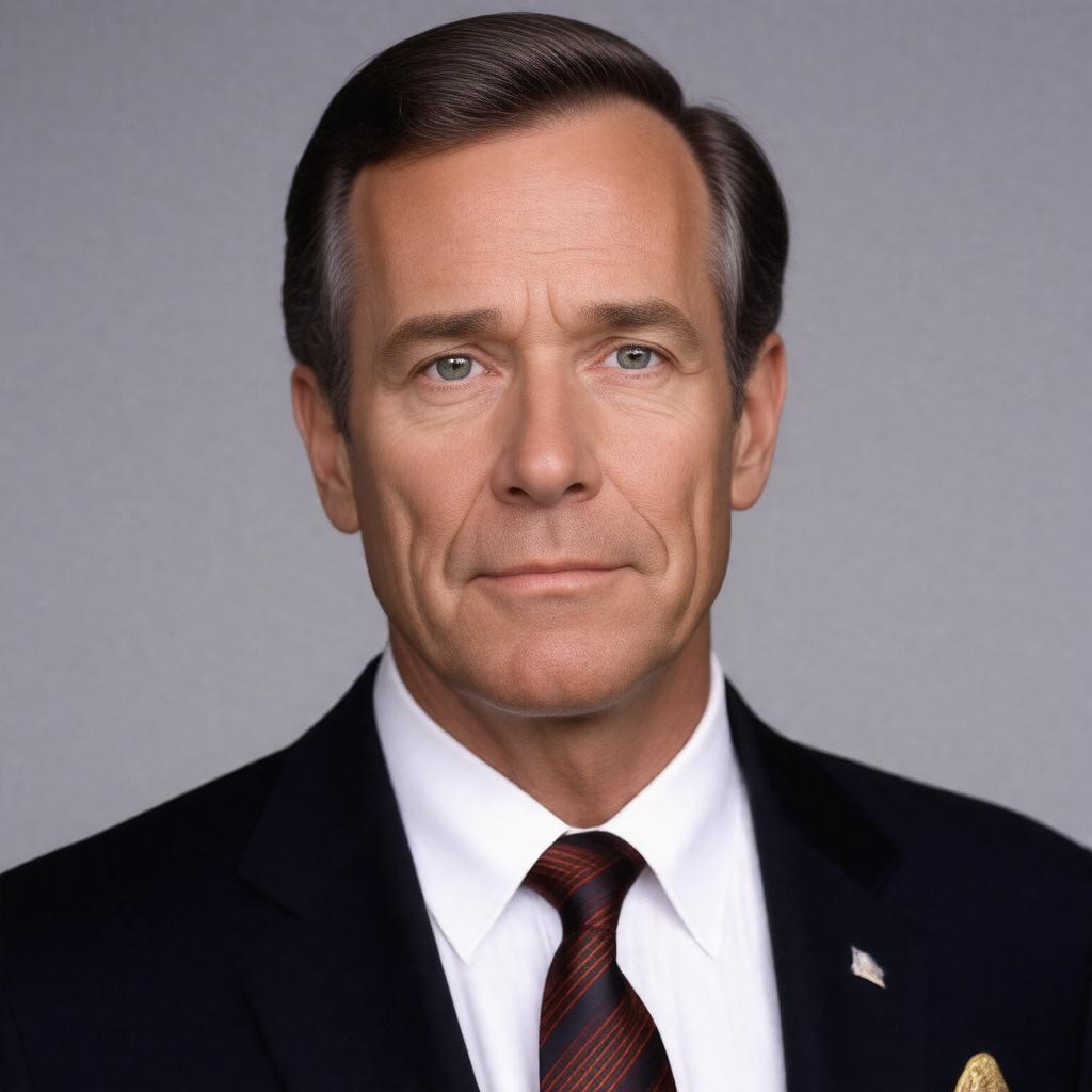 Generate a realistic portrait of Michael Murphy, a middle-aged American actor with a distinguished career in film and television, captured in a formal setting that reflects his profession, wearing attire suitable for a red-carpet event or a character representation inspired by one of his notable roles, such as a 1970s TV series or film, incorporating subtle elements that nod to his extensive work in movies like "Manhattan," "Nashville," "M*A*S*H," "Tanner '88," "An Unmarried Woman," and "Magnolia," with a focus on conveying his versatility as both an actor and a voice actor, set against a neutral or softly blurred background that emphasizes the subject.