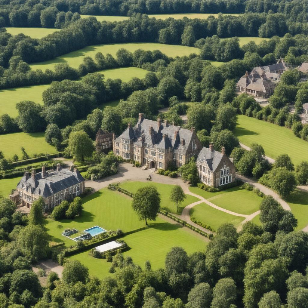 "Generate an image of the exterior of Millfield School, a large co-educational private school located in Street, Somerset, England, with a mix of modern and traditional architecture, surrounded by lush green grounds and sports facilities, including a swimming pool, equestrian centre, golf course, and rugby pitches, with the school's colours of blue, green, and white prominently displayed, in a realistic and inviting style."