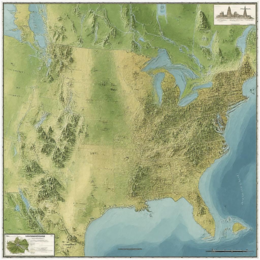 "Generate an image of a map of Monroe County, with its location highlighted in the United States, surrounded by notable landmarks and features, in a realistic and informative style."