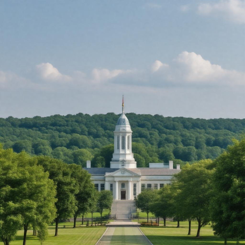 "Generate a representative image of Montgomery County, a county in the United States, with a scenic view of its landscape, possibly including a courthouse or a notable landmark, in a realistic style."