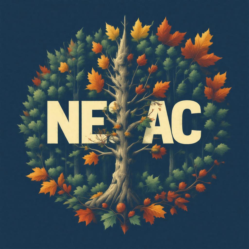 "Generate an image of the logo of the New England Small College Athletic Conference (NESCAC), a stylized representation of the athletic conference, with a mix of autumnal colors and possibly incorporating elements that reflect the 11 member schools or the sports offered, set against a backdrop that subtly suggests the New England region, in a clean and modern athletic logo style."