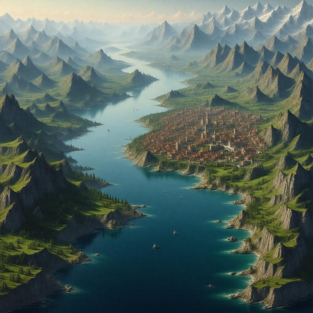 "Generate an image of a narrow sea strait, with a scenic coastline and several islands, inspired by the fictional world of Game of Thrones, separating the continents of Westeros and Essos, with a distant view of the skyline of King's Landing and the Free Cities such as Braavos, Pentos, and Volantis, in a realistic and epic fantasy style."
