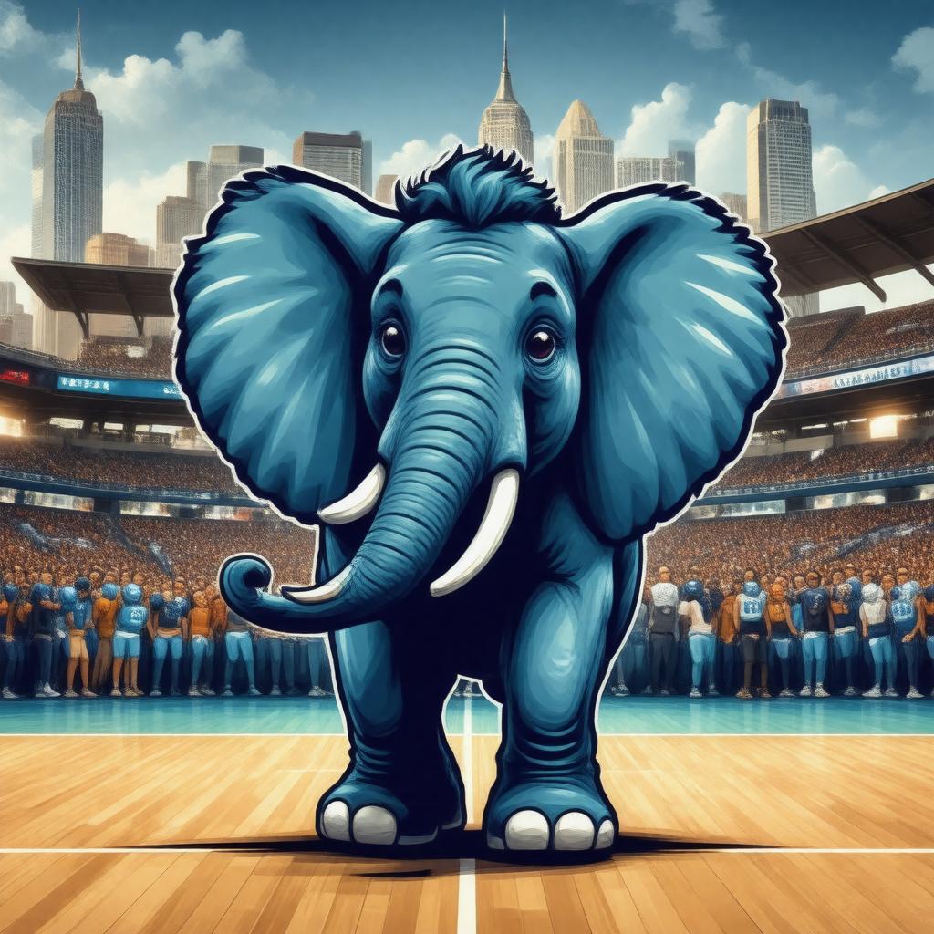 "Generate an image of the New York Liberty team logo or a representative scene featuring the team's colors (seafoam green, black, and white) and mascot Ellie the Elephant, in front of a New York City skyline or the Barclays Center arena, in a dynamic and vibrant sports illustration style."
