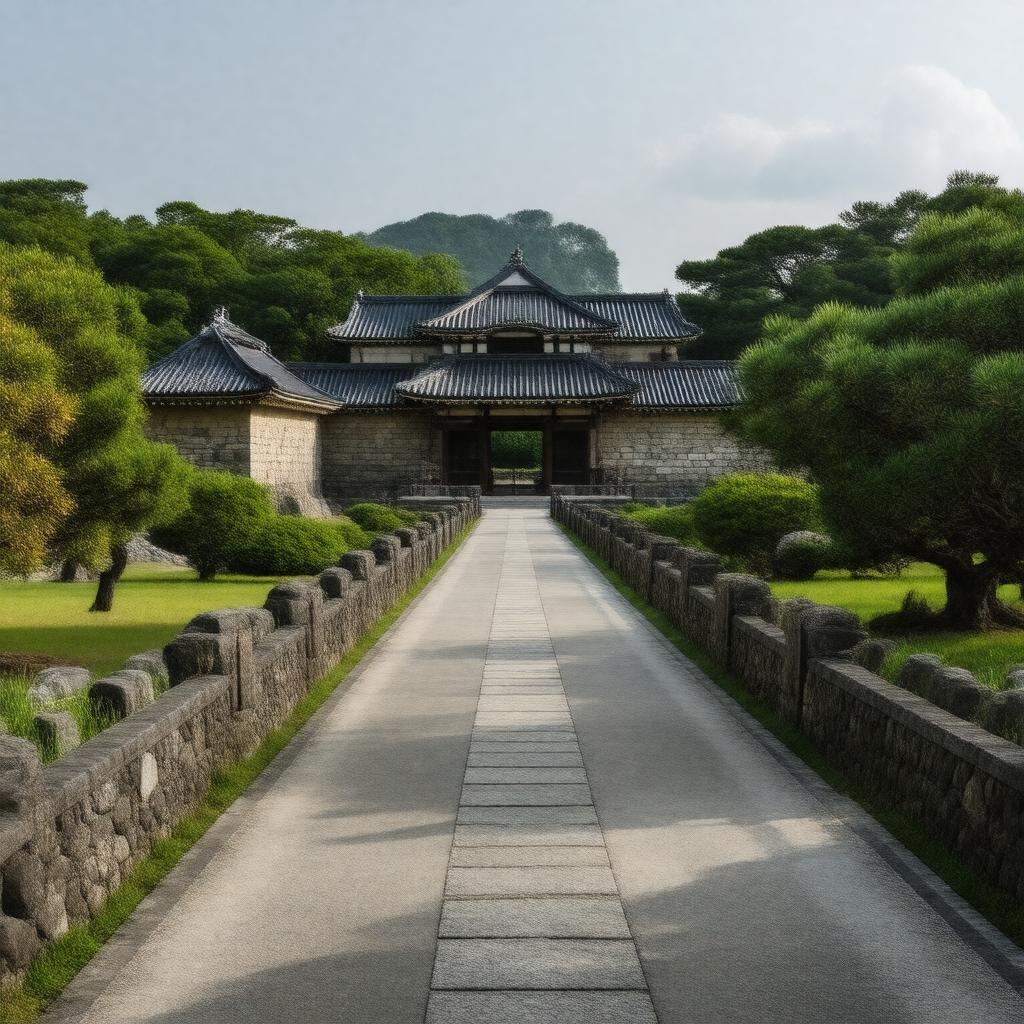 "Generate an image of Nijo Castle, a majestic Edo-period castle located in Kyoto, Japan, with its distinctive stone walls, beautiful gardens, and notable nightingale floors, showcasing its grand architecture and serene surroundings, in a realistic and detailed style."