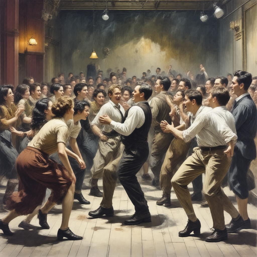 "Generate an image of a chaotic backstage scene in a theatre, with actors and crew members rushing around, tripping over each other and causing confusion, representing the farcical play 'Noises Off' by Michael Frayn, in a style that captures the frenetic energy and comedic mayhem of a theatre production gone wrong."