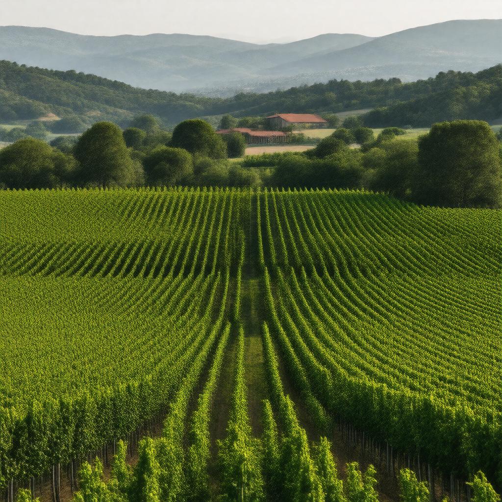 "Generate an image of a scenic vineyard landscape in Oakville AVA, Napa Valley, California, with rolling hills, lush greenery, and rows of grapevines under a Mediterranean climate, featuring a mix of gravelly alluvial soils and clay loam, with a notable winery in the background, such as Robert Mondavi Winery or Opus One Winery, and a subtle hint of the To Kalon Vineyard, in a realistic and serene style."