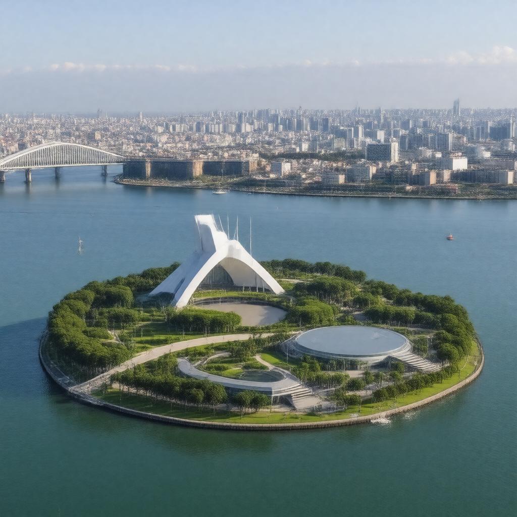 "Generate an image of Odaiba, an artificial lake and man-made island in Tokyo Bay, Japan, showcasing its futuristic architecture, shopping centers, and entertainment venues, with the Rainbow Bridge and Tokyo skyline in the background, in a modern and vibrant style."