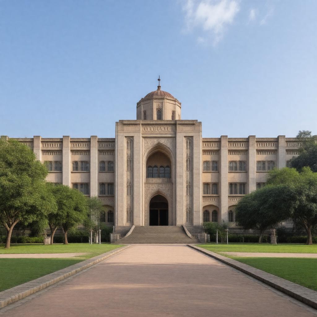 "Generate an image of the main building of Panjab University, a public university located in Chandigarh, India, established in 1882. The image should showcase the university's architecture and sprawling 550-acre campus. Incorporate elements that reflect the university's motto 'Let noble thoughts come to us from every side'. The style should be realistic and convey a sense of academic excellence."