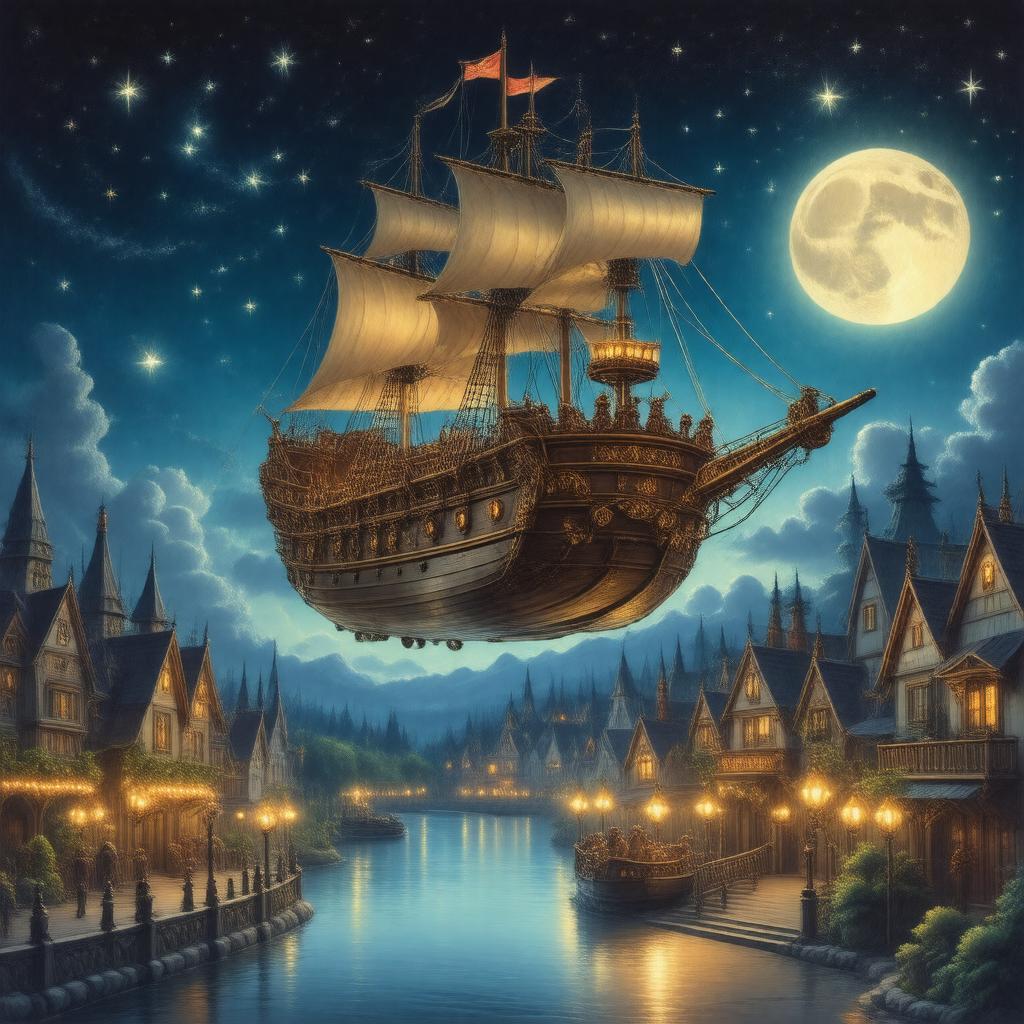 flying pirate ship vehicles scenes from Peter Pan story |