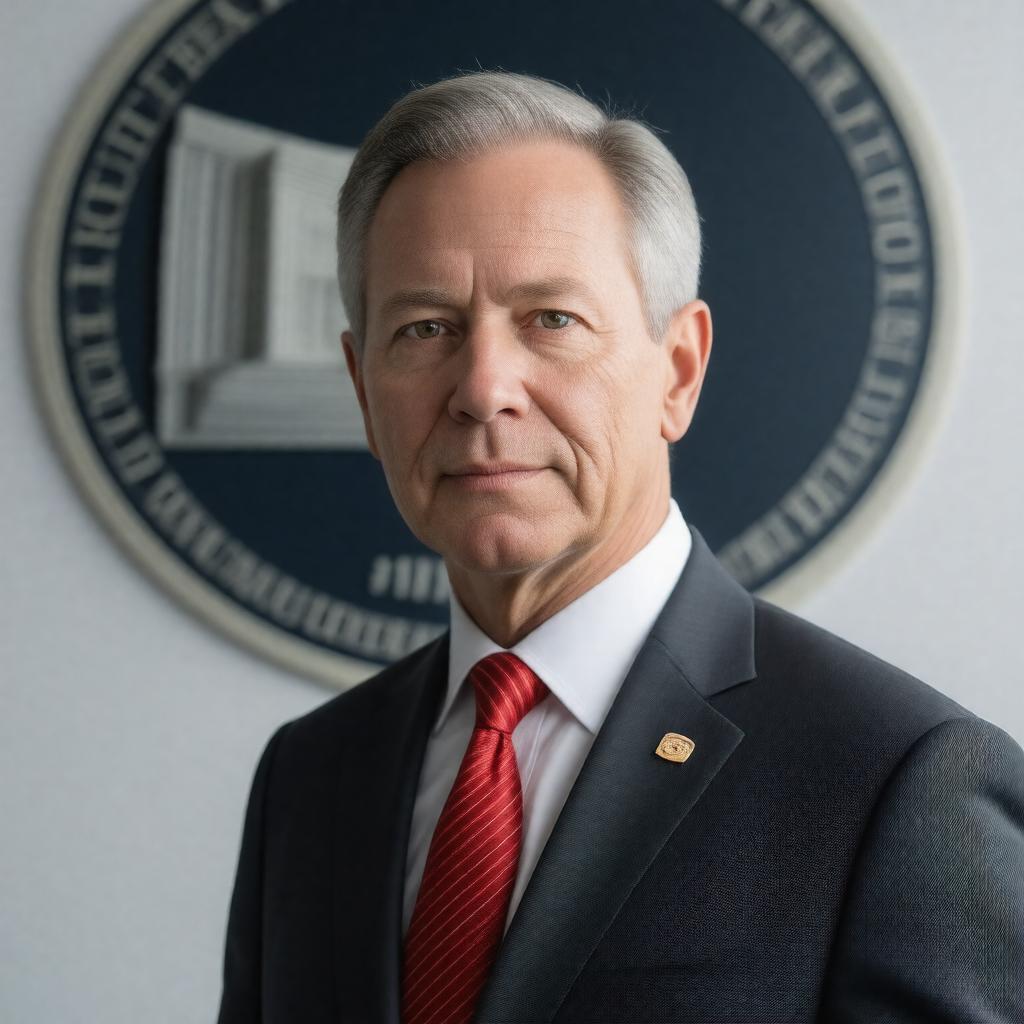 Generate a realistic image of Philip Jefferson, an American economist and academic, in a formal setting, possibly wearing a suit and standing in front of a backdrop that subtly suggests his connection to the Federal Reserve, such as a subtle pattern or a seal. He should be depicted as a middle-aged man with a professional demeanor, reflecting his role as Vice Chair of the Federal Reserve and Member of the Federal Reserve Board of Governors, appointed by President Joe Biden. Incorporate elements that hint at his academic background, such as a book or a lecturing podium faintly in the background, symbolizing his career as a professor. The image should convey a sense of authority, intelligence, and approachability, suitable for a prominent figure in economics and academia.