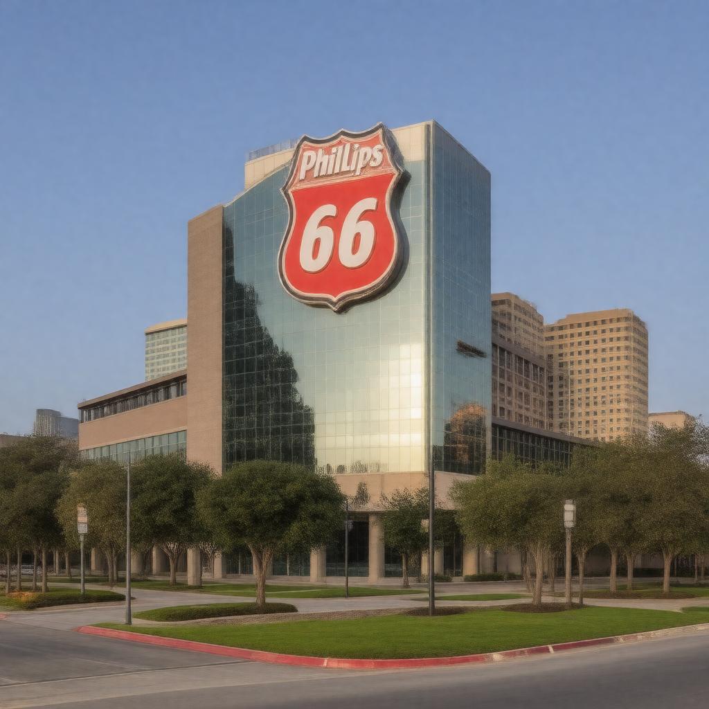 "Generate an image of the Phillips 66 headquarters in Houston, Texas, United States, showcasing its corporate architecture and branding, incorporating elements that reflect the company's involvement in the energy, oil and gas, and petrochemicals industries, with a style that is modern and professional."