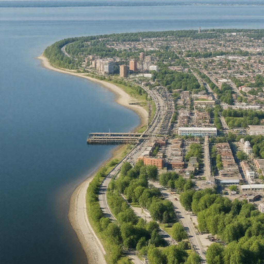 "Generate a realistic image of Port Colborne, a city located on the shores of Lake Erie in Ontario, Canada, showcasing its scenic waterfront, the Welland Canal, and surrounding landscape, in a daytime setting with a mix of urban and natural elements."