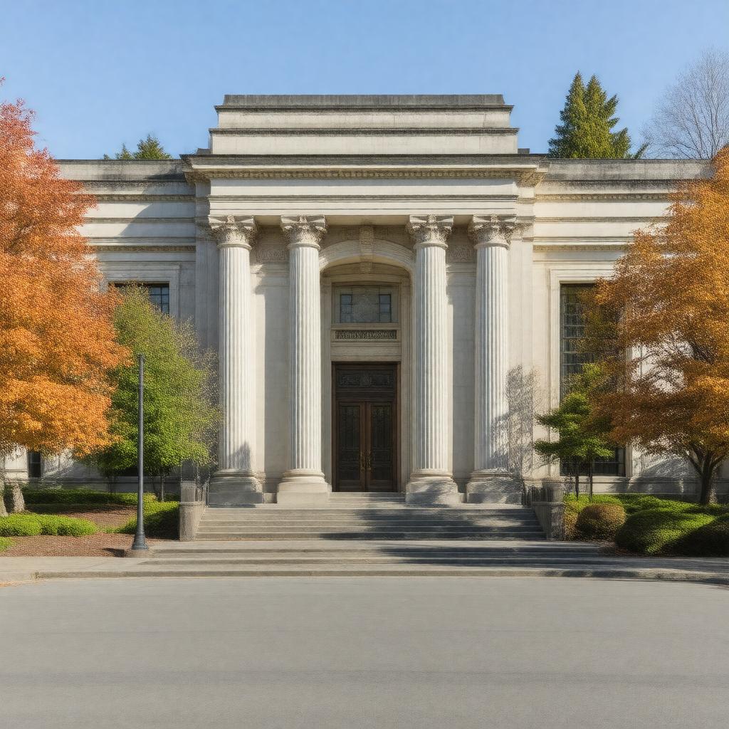 "Generate a photorealistic image of the exterior of the Portland Art Museum, located at 1219 SW Park Ave, Portland, OR 97205, USA, showcasing its architectural style and surrounding landscape, with a focus on capturing the museum's grandeur and cultural significance as a premier art institution in Portland, Oregon."