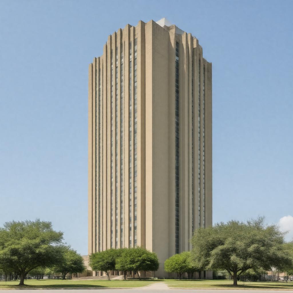 "Generate an image of the Price Building, also known as Price Tower, a 19-story, 221-foot-tall Modern-style skyscraper located in Bartlesville, Oklahoma, designed by Frank Lloyd Wright, with a striking exterior and a prominent presence in the city's landscape, surrounded by a few trees and a clear blue sky, showcasing its unique architectural design and historical significance as the only realized skyscraper by Frank Lloyd Wright."