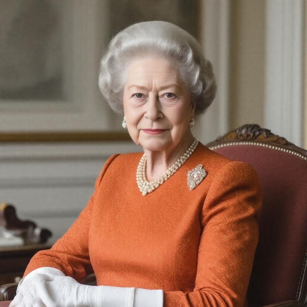 "Generate a realistic portrait of Queen Sonja of Norway, dressed in formal attire, sitting in a elegant chair with a subtle background of the Norwegian royal palace, Oslo, capturing her warm and dignified personality as the Queen consort, incorporating a sense of serenity and authority."
