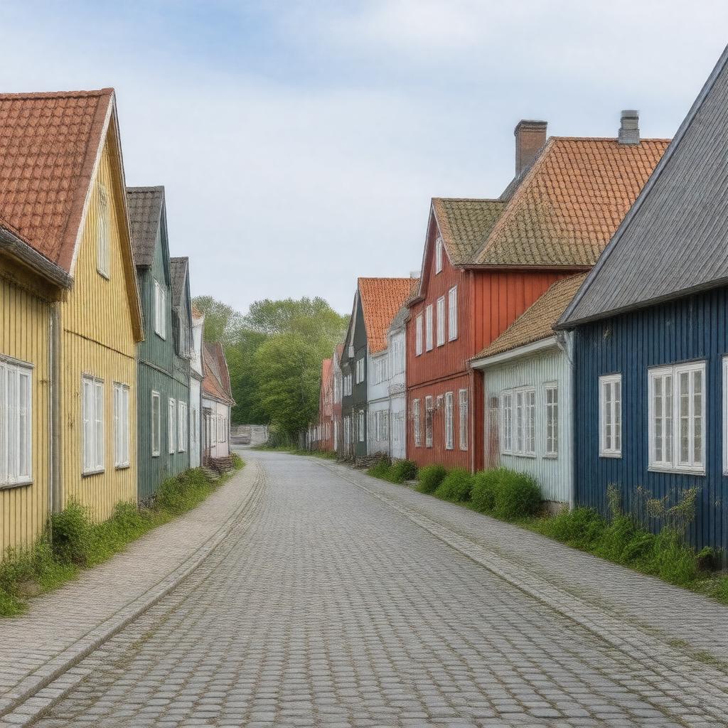 "Generate an image of a charming, old wooden town in Finland, with colorful buildings and cobblestone streets, surrounded by water and showcasing traditional lace-making patterns, representing Rauma, a UNESCO World Heritage Site in Satakunta region."