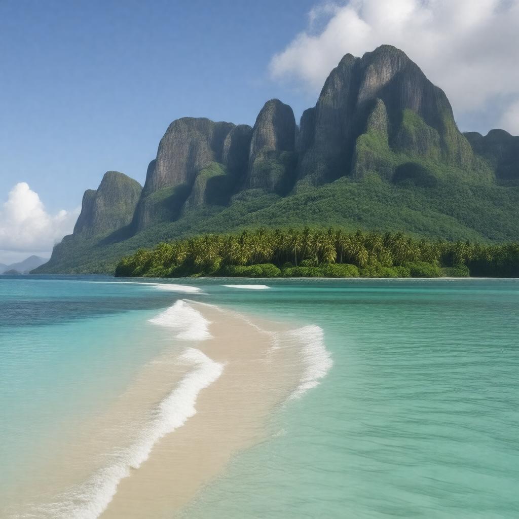 "Generate an image of a tropical island with crystal-clear turquoise waters, white sandy beaches, and lush green mountains in the background, representing the Republic of Mauritius, a country located in the Indian Ocean, known for its beautiful beaches, tourism, and multicultural society."