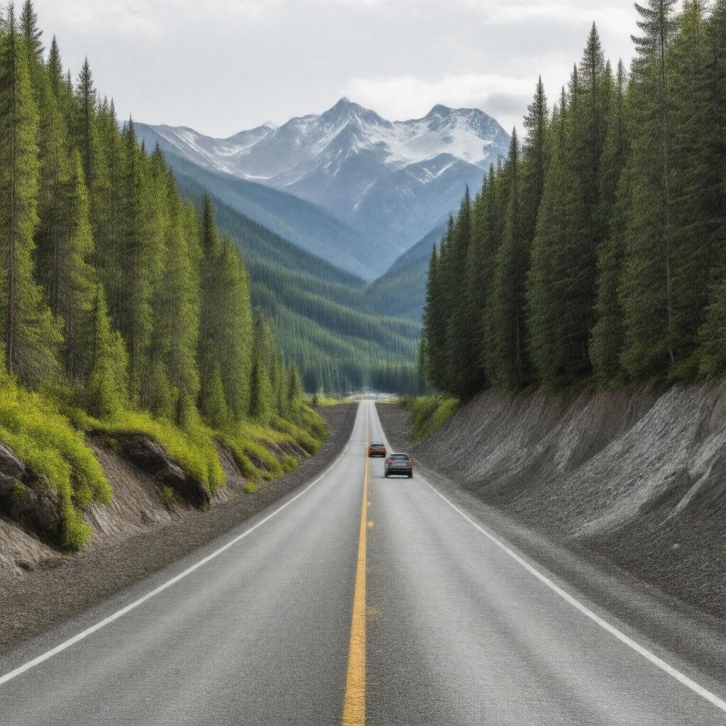 "Generate an image of a scenic stretch of the Richardson Highway, a 368-mile road in Alaska, United States, with the highway winding through a mountainous landscape, possibly near Thompson Pass or Worthington Glacier, with a few vehicles or a pipeline visible, in a realistic style."