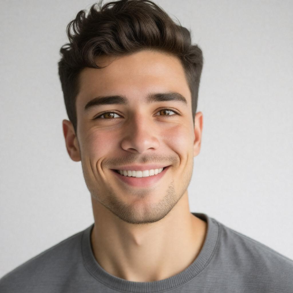 Generate a realistic image of a young man with a charismatic smile, representing the given name Ricky, inspired by notable individuals such as Ricky Martin, Ricky Gervais, Ricky Rubio, and Ricky Hatton, in a modern, casual setting that reflects the English and Spanish cultures.