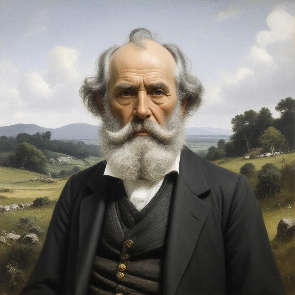 Generate a realistic portrait of Robert Darwin, a British physician and naturalist, in a 19th-century English countryside setting, possibly near his residence The Mount in Shrewsbury, with a subtle background that hints at his connection to the natural world, reflecting his occupation and interests, in a classical oil painting style.