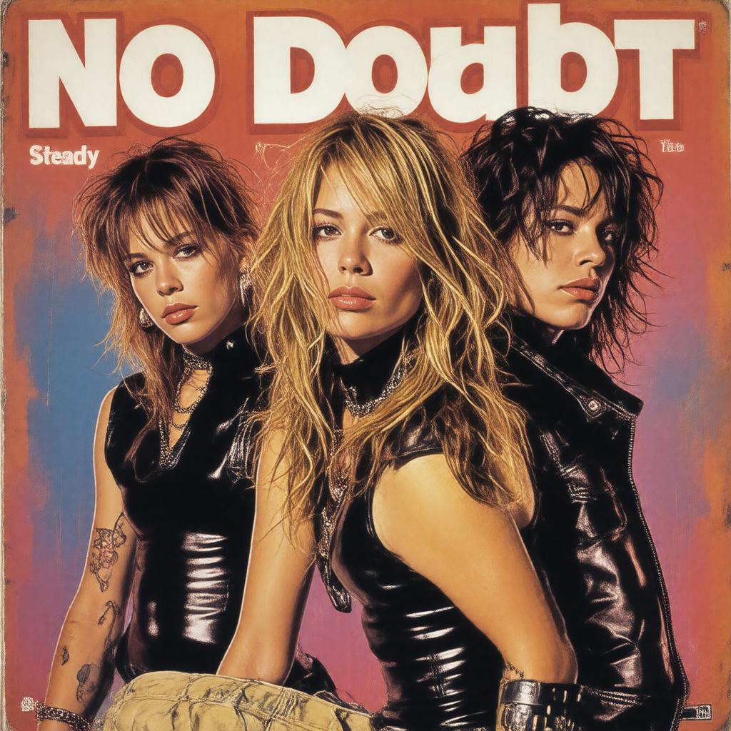 "Generate an image of the album cover for Rock Steady, the fifth studio album by American rock band No Doubt, released on December 11, 2001, by Interscope Records, featuring a vibrant and eclectic mix of colors and styles that reflect the album's genres of pop, dancehall, and reggae fusion."