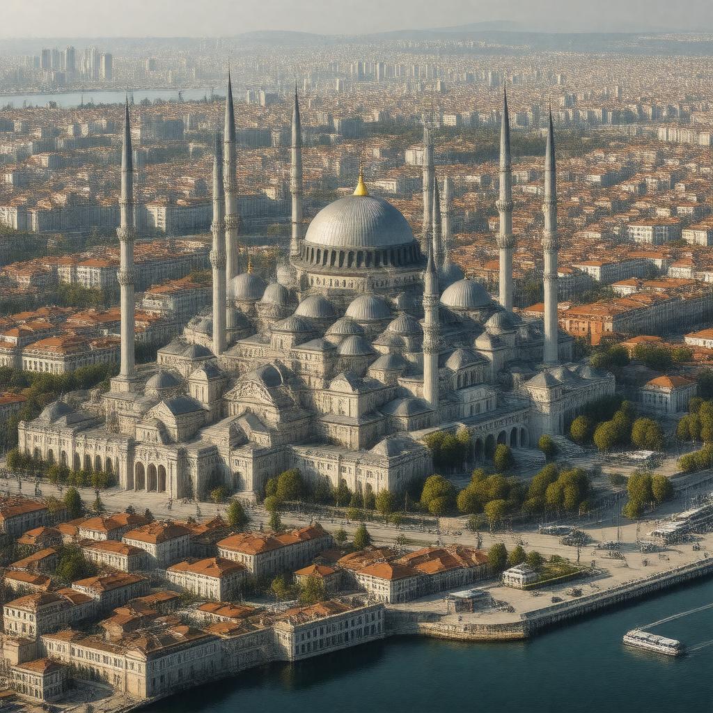 "Generate an image of the Süleymaniye Mosque, a prominent Ottoman imperial mosque in Istanbul, Turkey, showcasing its stunning architecture and majestic dome, surrounded by its complex including a hospital, food facilities, hotel, hamam, and cemetery, overlooking the Golden Horn, in a realistic and detailed style, incorporating elements of Ottoman architecture."