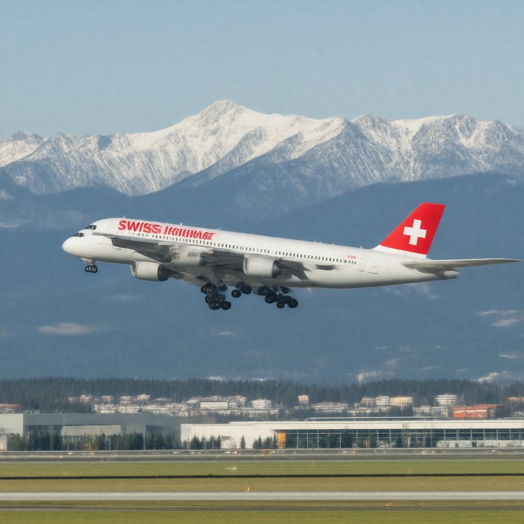 "Generate an image of a Swiss International Air Lines AG airplane taking off from Zurich Airport, with the Swiss Alps in the background, in a realistic style."
