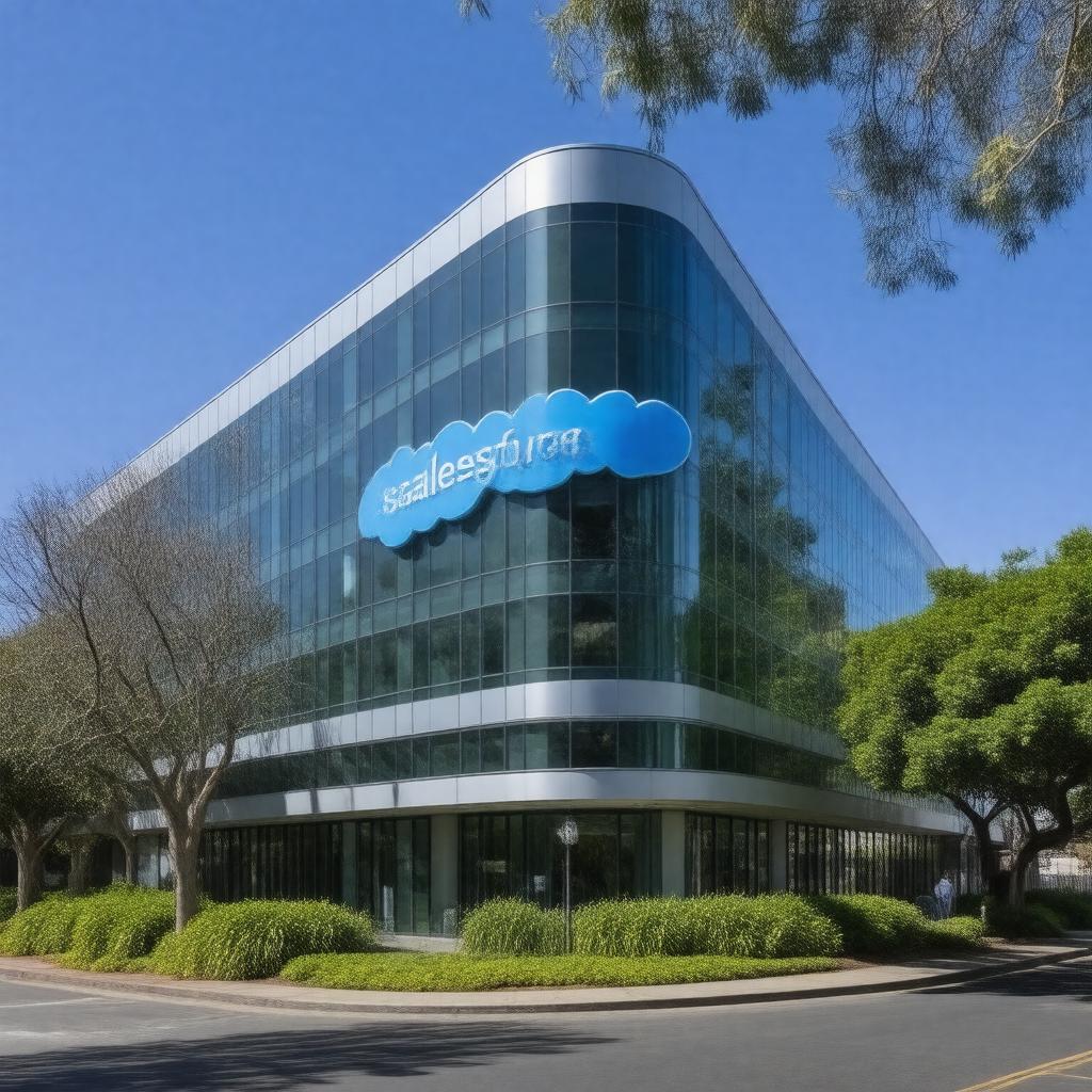 "Create an image of the Salesforce headquarters, a sleek and modern office building located in San Francisco, California, United States, with the Salesforce logo prominently displayed on the exterior, surrounded by lush greenery and showcasing a vibrant and dynamic work environment, reflecting the company's innovative and customer-centric approach to cloud computing and software solutions."
