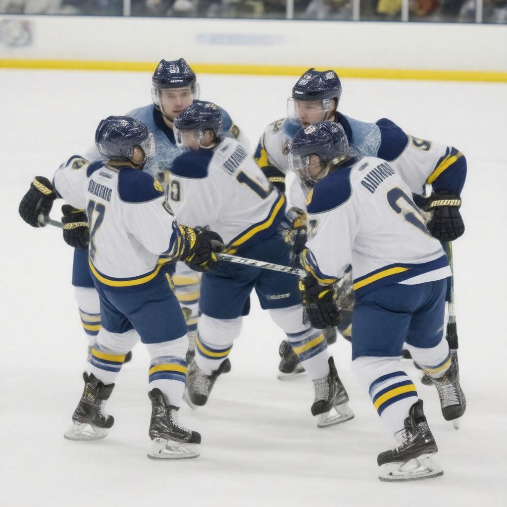 "Generate an image of a junior ice hockey team logo or a photograph of the team in action, specifically representing the Saskatoon Blades, an ice hockey team based in Saskatoon, Saskatchewan, Canada, with their distinctive blue, yellow, and white colors, and incorporating elements that reflect their affiliation with the Western Hockey League, playing at the SaskTel Centre."