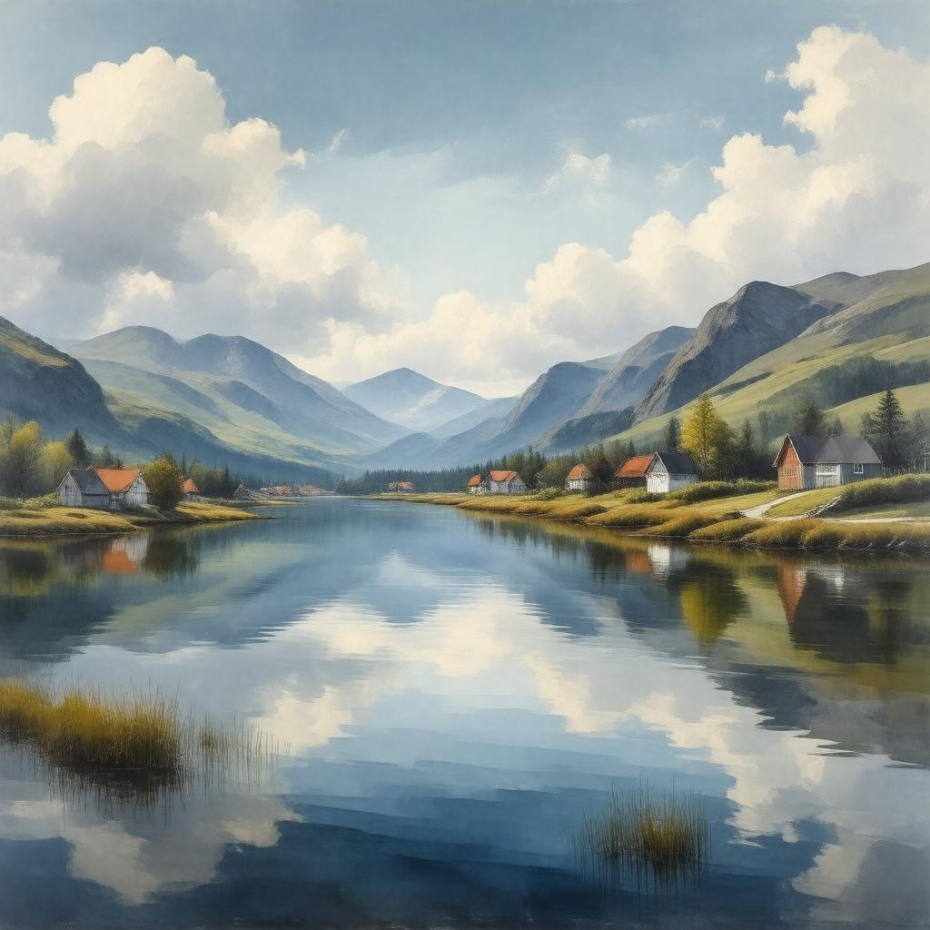 "Generate an image representing Scandinavian art, specifically a watercolor painting in the style of the Skagen Painters, depicting a serene Nordic landscape with rolling hills, a calm lake, and a few traditional Scandinavian houses in the background, with a minimalist and functionalist aesthetic, influenced by the natural beauty of the region and the principles of Nordic art."