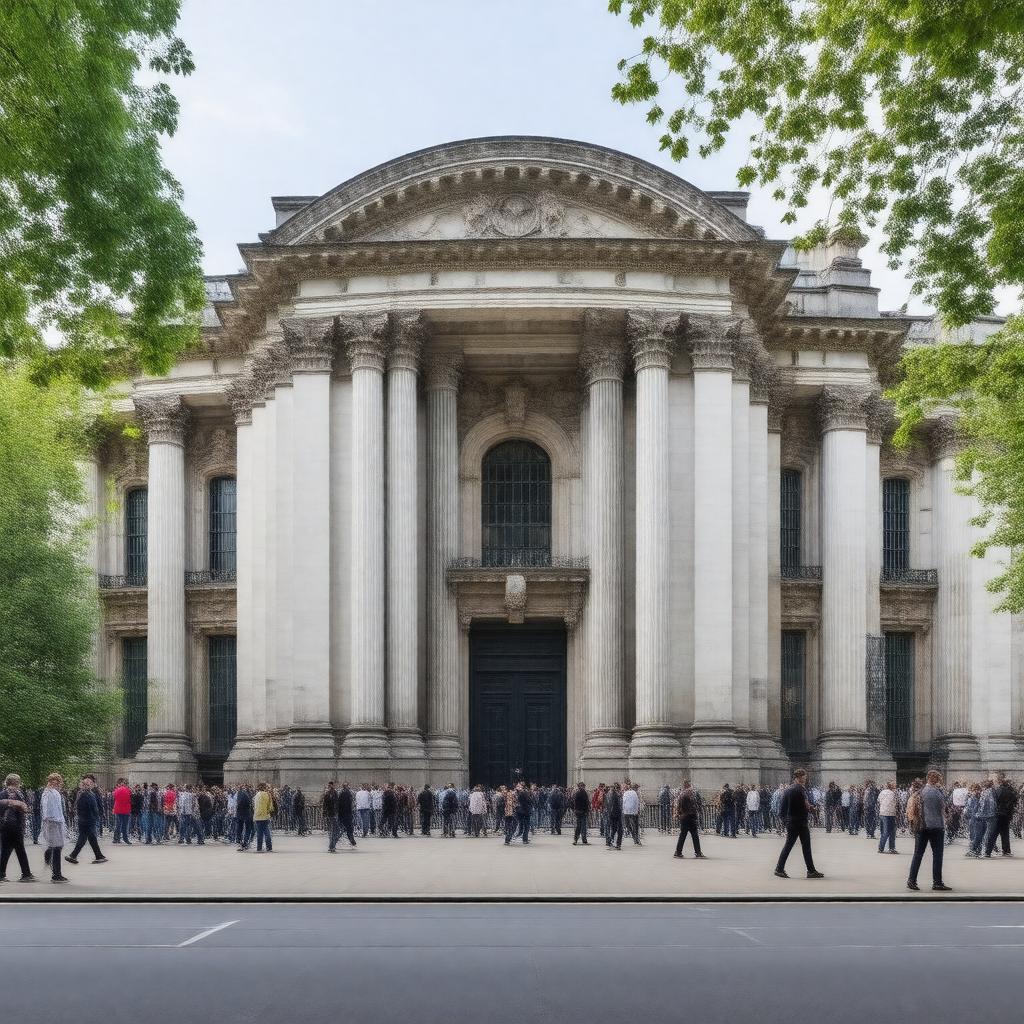 "Generate a photorealistic image of the exterior of the Science Museum located on Exhibition Road, South Kensington, London, showcasing its iconic architecture and bustling surroundings, with a clear view of the museum's main entrance and a few visitors milling about, in a daytime setting with a clear sky."