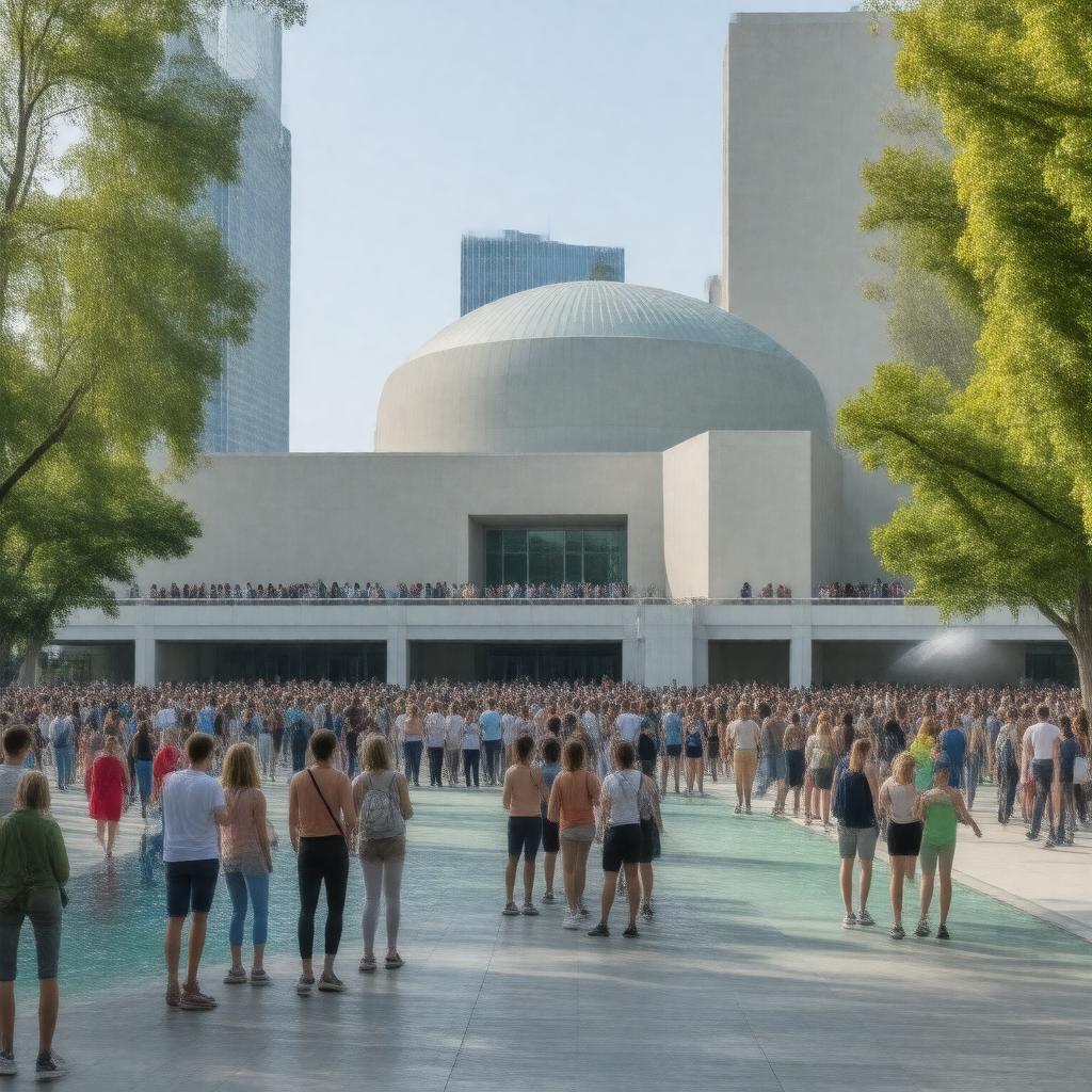 "Generate a photorealistic image of the exterior of Shedd Aquarium, located at 1200 S. Lake Shore Drive, Chicago, IL 60605, showcasing its iconic architecture and beautiful lakefront setting, with a large crowd of visitors in front, highlighting its popularity as a tourist destination and a premier wildlife attraction in the United States."