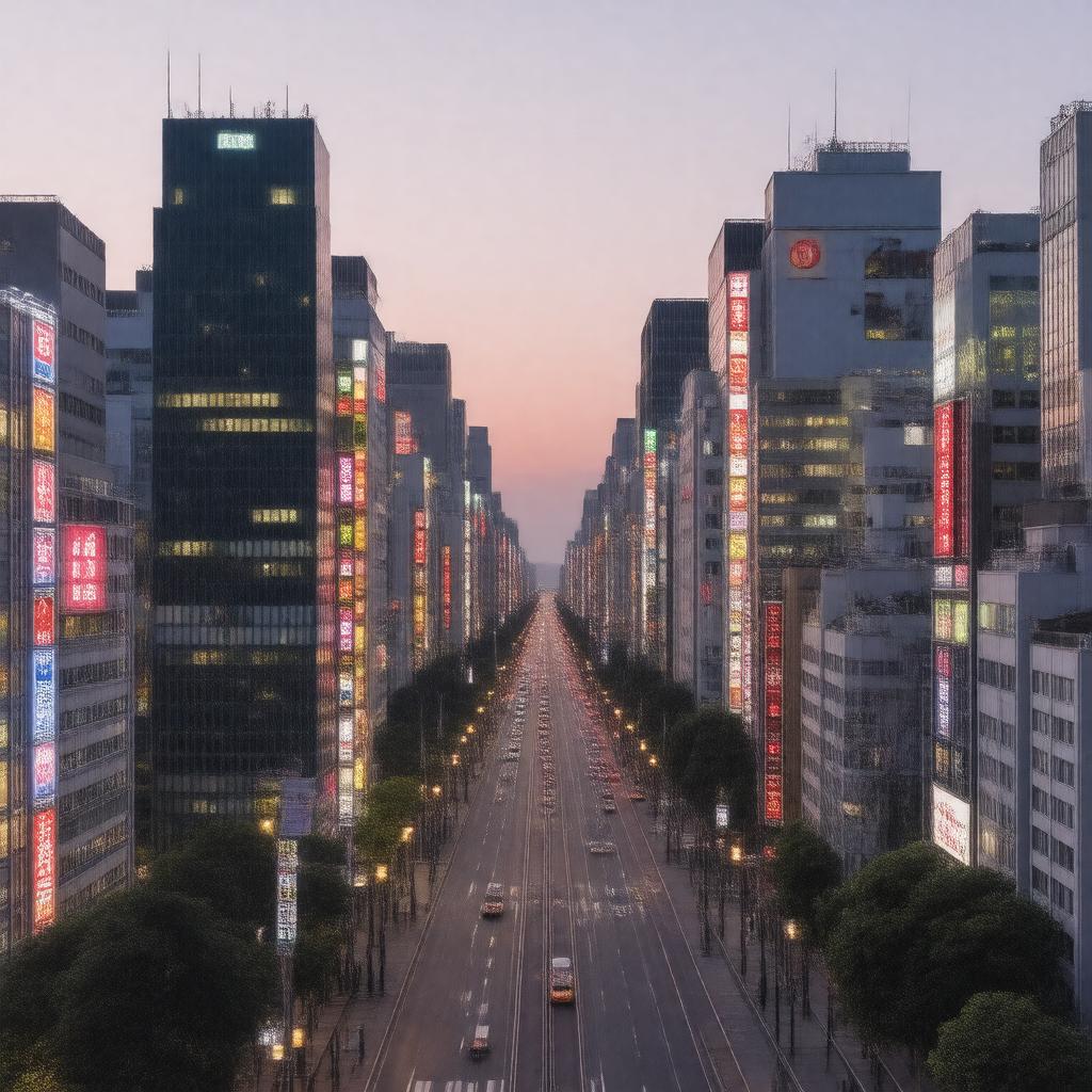 "Generate a realistic image of Shinjuku cityscape at dusk, featuring the Tokyo Metropolitan Government Building, Shinjuku Station, and Kabukicho in the background, with a bustling street filled with neon lights and skyscrapers, showcasing the vibrant atmosphere of Shinjuku, Tokyo, Japan."