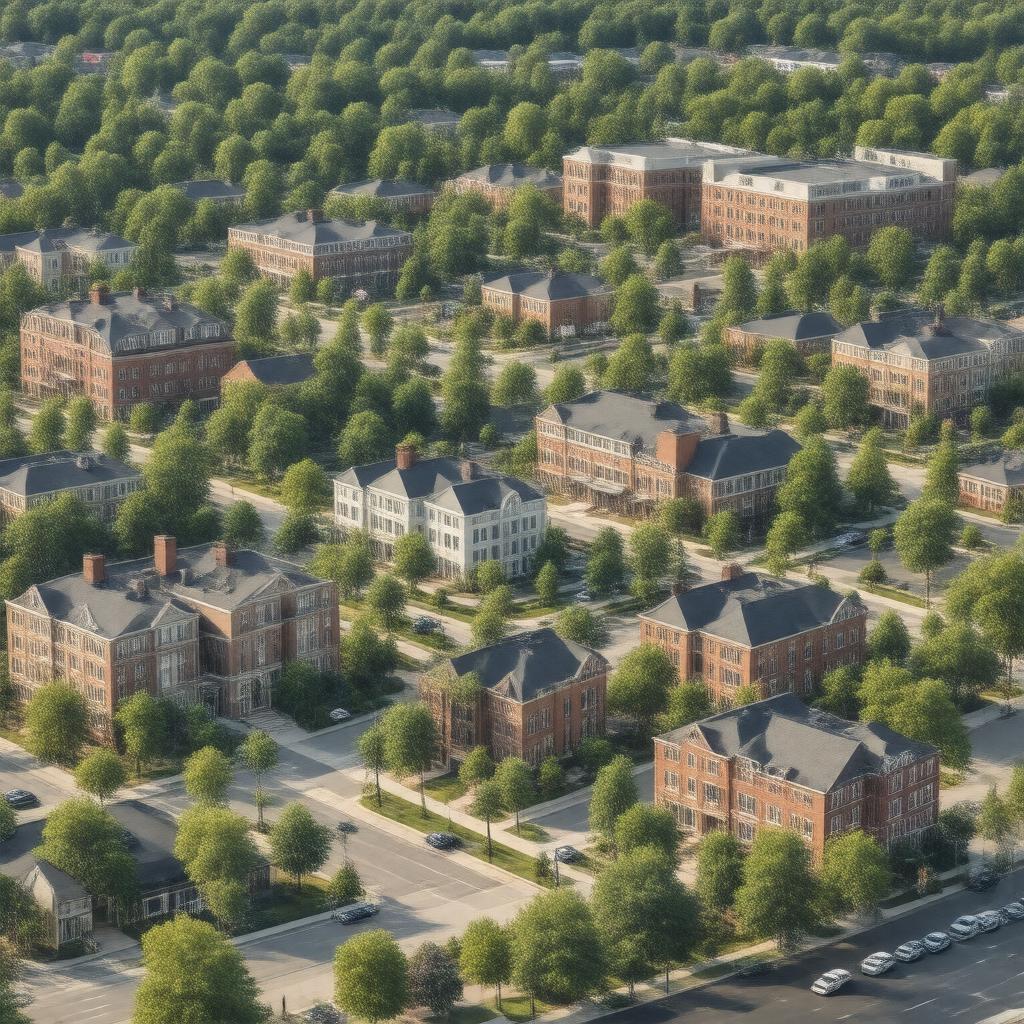 "Generate a realistic image of a charming suburban neighborhood with a mix of residential buildings, shops, and green spaces, representing Shirlington, a neighborhood in Arlington County, Virginia, with a village-like atmosphere, featuring a prominent shopping center, parks, and amenities, in a daytime setting with a warm and inviting tone."
