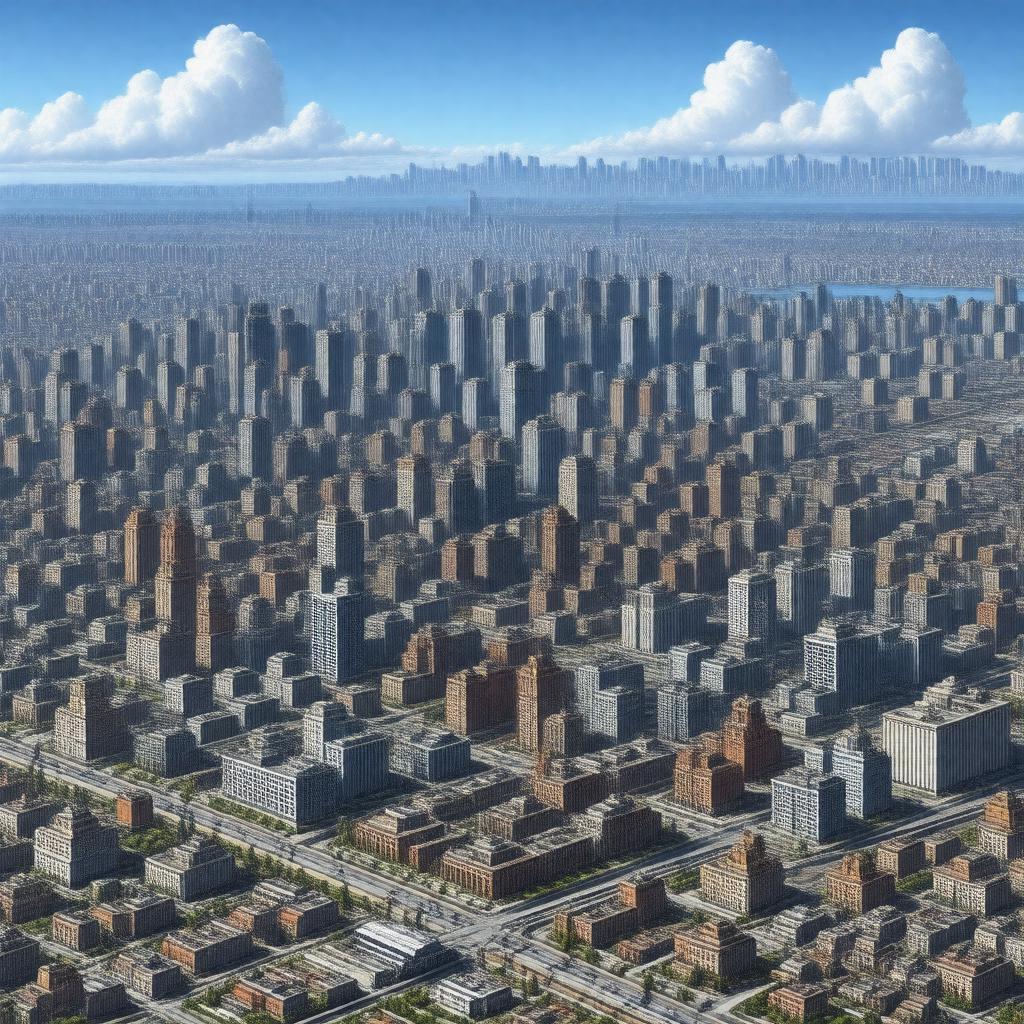 "Generate an image of a screenshot from SimCity, a city-building game, showcasing a bustling metropolis with various zones, buildings, and infrastructure, set against a backdrop of a sunny day with a few puffy clouds, incorporating elements of open-ended gameplay, city simulation, zoning system, and disaster events, in a 2D isometric style reminiscent of classic video games from the 1980s and 1990s."