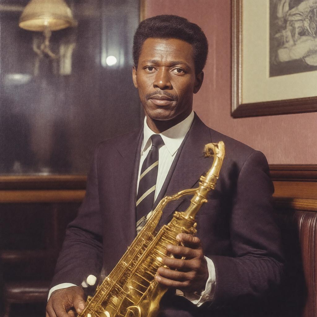Generate an image of a British jazz musician, specifically a saxophonist and composer, in a classic 1960s-style jazz club setting, dressed in a suit and holding a saxophone, with a nod to his notable works and collaborations, such as the themes for "The Avengers" and "Modesty Blaise", and his association with his wife Dame Cleo Laine.