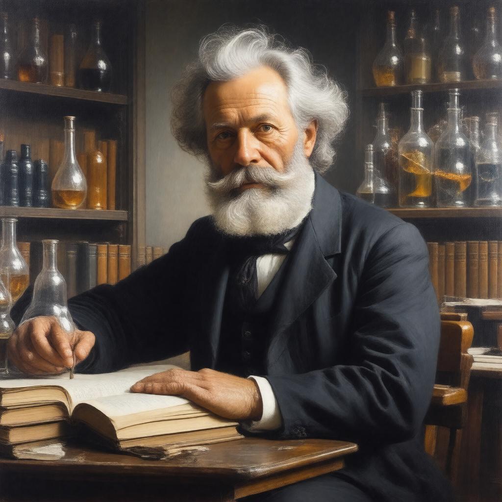 Generate a realistic portrait of Sir John Sulston, a British biologist, sitting in a contemplative pose, possibly surrounded by books or laboratory equipment, with a subtle background that hints at his connection to Cambridge and his work on the Human Genome Project or Caenorhabditis elegans, in a formal, yet approachable style, reflecting his achievements and contributions to science.